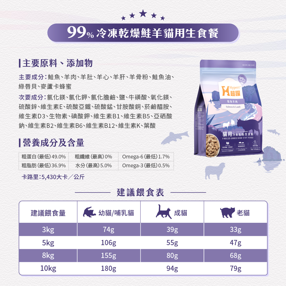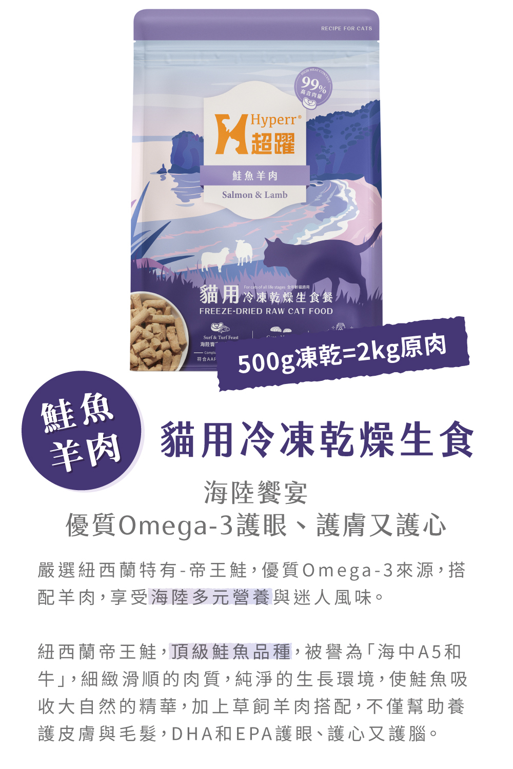 ・98%高含肉量,鮭魚羊肉富含脂肪酸,照護皮毛好選擇