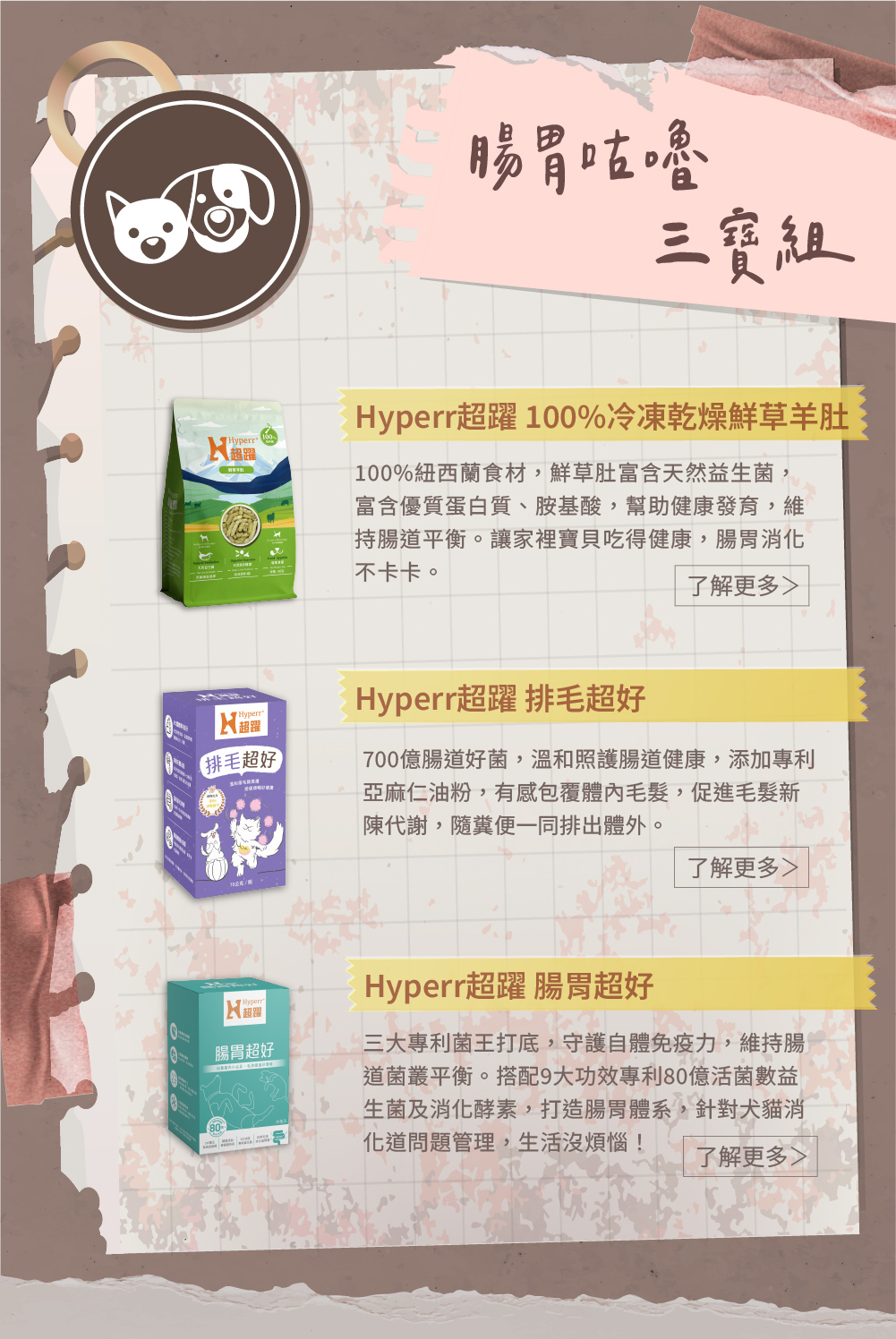 Hyperr超躍打造照護腸胃三巨頭,保健品以及天然羊肚佐餐,腸胃咕嚕咕嚕叫不是太餓,而是超順暢!。